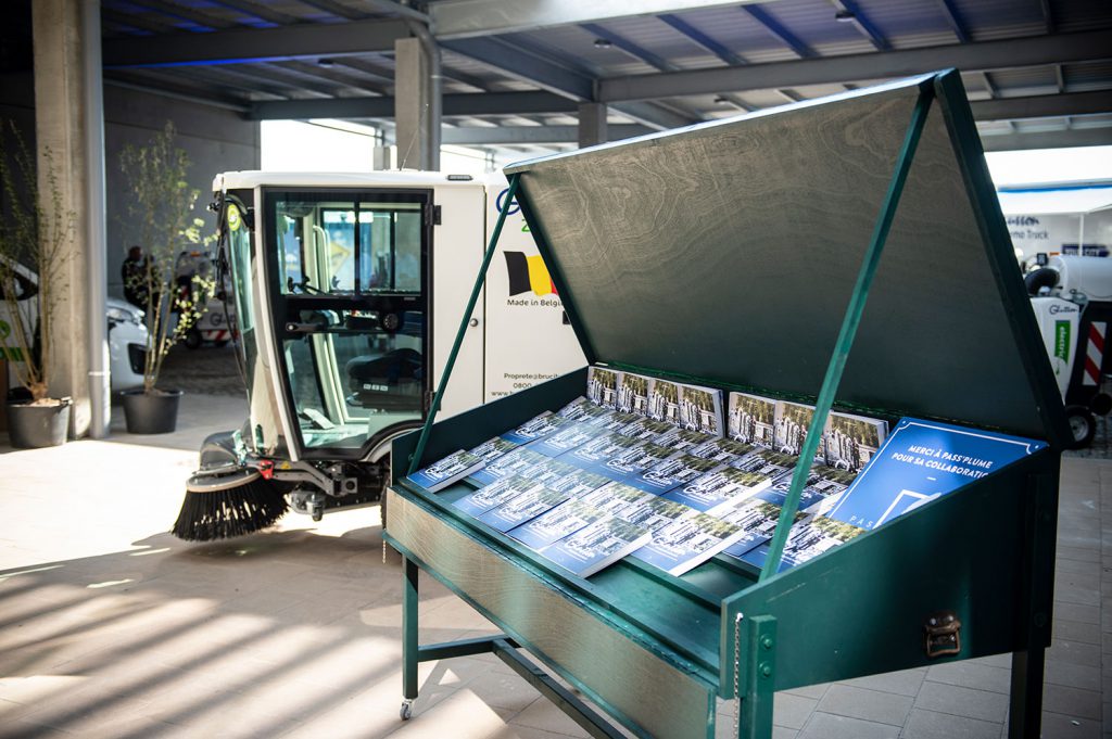 Du mobilier de rue tel qu’une étagère à la façon des bouquinistes parisiens ou encore des stop trottoirs ont été réalisé par nos soins.