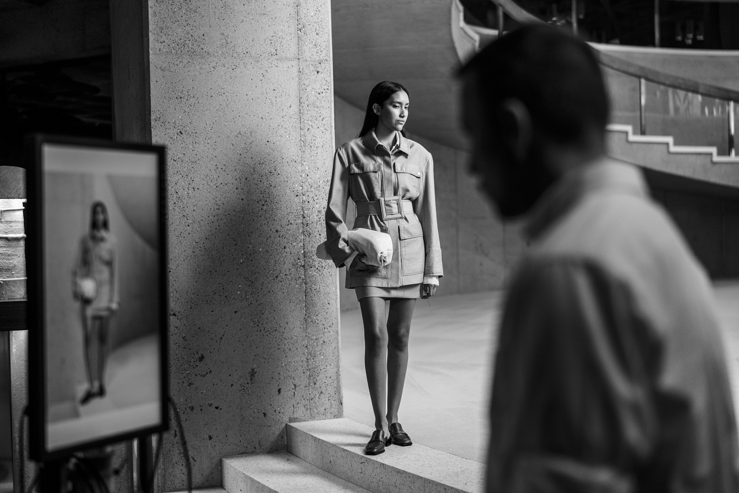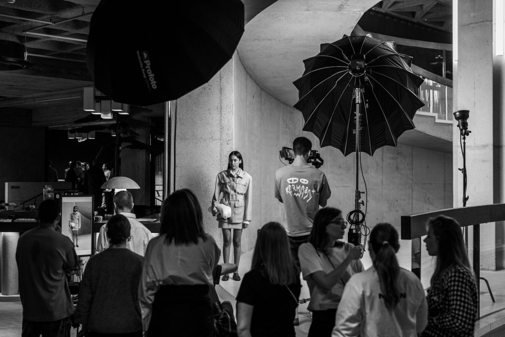 Des coulisses des prises de vue à un défilé présenté aux Galeries de la Reine à Bruxelles, jusqu’à la Fashion Week de Paris, le regard se place volontairement à distance du podium.